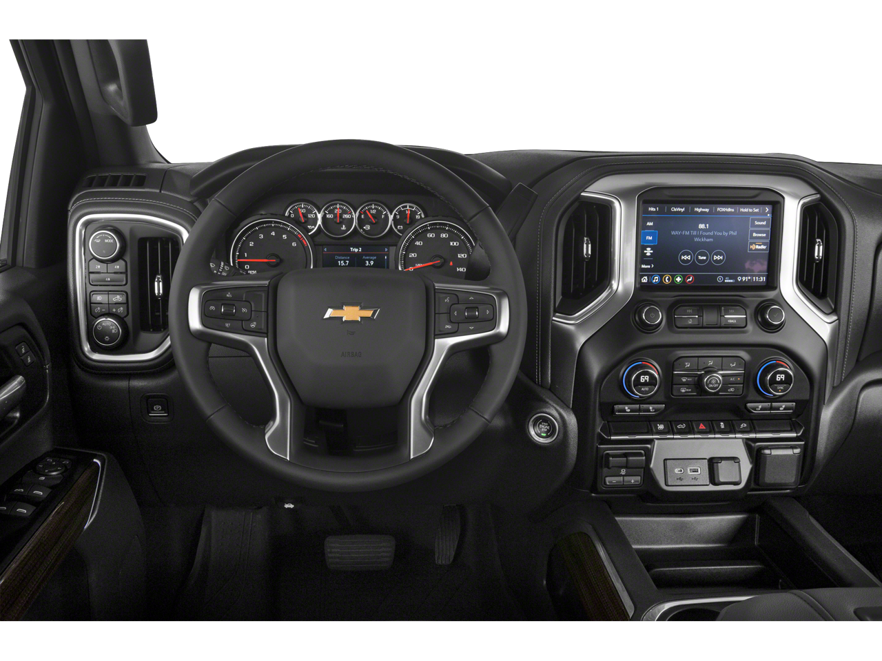 All Star Edition, Cloth Rear Seat w/Storage Package, Convenience Package (10-Way Power Driver Seat Adjuster w/Lumbar, 12-Volt Rear Auxiliary Power Outlet, Dual Charge-Only USB Ports (2nd Row), Dual-Zone Automatic Climate Control, Electric Rear-Window Defogger, Electrical Lock Control Steering Column, Front LED Fog Lamps, Heated Driver & Front Outboard Passenger Seating, Heated Steering Wheel, Keyless Open & Start, Leather-Wrapped Steering Wheel, Manual Tilt & Telescoping Steering Column, Remote Vehicle Starter System, and Unauthorized Entry Theft-Deterrent System), Convenience Package II (120-Volt Bed Mounted Power Outlet, 120-Volt Instrument Panel Power Outlet, 2 USB Ports & 1 SD Card Reader (1st Row), 6-Speaker Audio System, Advanced Trailering System, HD Radio, HD Rear Vision Camera, Hitch Guidance w/Hitch View, Power Sliding Rear Window w/Defogger, Radio: Chevrolet Infotainment 3 Plus System, SiriusXM w/360L, and Universal Home Remote), Gooseneck/5th Wheel Package (Black Chevytec Spray-On Bedliner w/Chevrolet Logo), Gooseneck/5th Wheel Prep Package, Leather Package, Preferred Equipment Group 1LT (170 Amp Alternator, 2 USB Ports (1st Row), 2-Speed Electronic Shift Transfer Case, 4-Way Manual Driver Seat Adjuster, 4.2 Diagonal Color Display DIC, 4G LTE Wi-Fi Hotspot Capable, Black Mirror Caps, Bluetooth® For Phone, Chevrolet Connected Access Capable, Chrome Front Grille, Color-Keyed Carpeting Floor Covering, Compass, Deep-Tinted Glass, Electronic Cruise Control w/Set & Resume Speed, Front Rubberized Vinyl Floor Mats, Heated Vertical Trailering Mirrors, Integrated Trailer Brake Controller, Locking Tailgate, Manual Tailgate Function w/EZ Lift (QT3), Manual Tilt-Wheel Steering Column, OnStar & Chevrolet Connected Services Capable, Power Door Locks, Power Front Windows w/Driver Express Up/Down, Power Front Windows w/Passenger Express Down, Power Rear Windows w/Express Down, Rear 60/40 Folding Bench Seat (Folds Up), Rear Rubberized Vinyl Floor Mats, Rear Vision Camera, Remote Keyless Entry, Steering Wheel Audio Controls, and Urethane Steering Wheel), Safety Package (Lane Change Alert w/Side Blind Zone Alert, Rear Cross Traffic Alert, and Ultrasonic Front & Rear Park Assist), Suspension Package, Up-Level Rear Seat w/Storage Package, 17 Machined Aluminum Wheels, 1st & 2nd Row All-Weather Floor Liners (LPO), 220 Amp Alternator, 3.42 Rear Axle Ratio, 3.73 Rear Axle Ratio, 4-Wheel Disc Brakes, 6 Speakers, 6 Rectangular Chromed Tubular Assist Steps, 720 Cold-Cranking Amps Heavy-Duty Battery, ABS brakes, Air Conditioning, Alloy wheels, AM/FM radio, Apple CarPlay/Android Auto, Auto-Dimming Inside Rear-View Mirror, Bed View Camera, Brake assist, Bumpers: chrome, Cloth Seat Trim, Delay-off headlights, Driver door bin, Driver vanity mirror, Dual front impact airbags, Dual front side impact airbags, Electronic Stability Control, Engine Block Heater, Exhaust Brake, Exterior Parking Camera Rear, Floor-Mounted Center Console, Front 40/20/40 Split-Bench Seat w/Storage, Front anti-roll bar, Front Bucket Seats w/Center Console, Front Center Armrest w/Storage, Front License Plate Kit, Front reading lights, Front wheel independent suspension, Fully automatic headlights, Heated & Auto-Dimming Vertical Trailering Mirrors, Heated door mirrors, Illuminated entry, LED Cargo Area Lighting, LED Smoked Amber Roof Marker Lamps, Low tire pressure warning, Manual Tailgate Function w/EZ Lift, Occupant sensing airbag, Outside temperature display, Overhead airbag, Overhead console, Panic alarm, Passenger door bin, Passenger vanity mirror, Power door mirrors, Power steering, Power windows, Premium audio system: Chevrolet Infotainment 3, Radio: Chevrolet Infotainment 3 System, Rear reading lights, Rear step bumper, Rear Wheelhouse Liners, Remote keyless entry, Speed contr