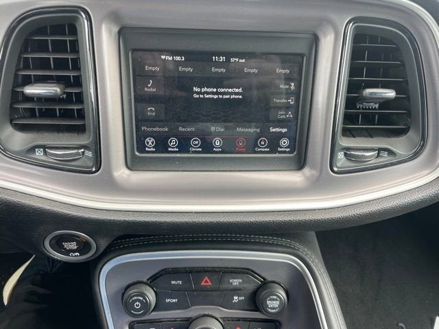 Blacktop Package (Black Fuel Filler Door, Black Grille w/Bezel, Challenger Blacktop Grille Badge, Gloss Black I/P Cluster Trim Rings, Leather Performance Steering Wheel, Rear Black Spoiler, Satin Black Dodge Tail Lamp Badge, and Wheels: 20 x 8.0 Black Noise Painted), Quick Order Package 2EA, Power driver seat, Remote keyless entry, 4-Wheel Disc Brakes, 6 Speakers, ABS brakes, Air Conditioning, Alloy wheels, AM/FM radio, Anti-whiplash front head restraints, Apple CarPlay, Apple CarPlay/Android Auto, Auto-dimming Rear-View mirror, Automatic temperature control, Brake assist, Bumpers: body-color, Compass, Compass Gauge, Delay-off headlights, Driver door bin, Driver vanity mirror, Dual front impact airbags, Dual front side impact airbags, Electronic Stability Control, Four wheel independent suspension, Front anti-roll bar, Front Bucket Seats, Front Center Armrest, Front dual zone A/C, Front License Plate Bracket, Front reading lights, Fully automatic headlights, Google Android Auto, GPS Antenna Input, Heated door mirrors, Houndstooth Cloth Sport Seat, Illuminated entry, Integrated Center Stack Radio, Integrated Voice Command w/Bluetooth®, Leather Shift Knob, Low tire pressure warning, Media Hub (2 USB, AUX), Outside temperature display, Overhead airbag, Overhead console, Panic alarm, ParkView Rear Back-Up Camera, Passenger door bin, Passenger vanity mirror, Power door mirrors, Power steering, Power windows, Radio data system, Radio: Uconnect 4 w/7 Display, Rear anti-roll bar, Rear reading lights, Rear seat center armrest, Rear window defroster, Security system, Speed control, Speed-sensing steering, Split folding rear seat, Spoiler, Steering wheel mounted audio controls, Tachometer, Telescoping steering wheel, Tilt steering wheel, Traction control, Trip computer, USB Host Flip, Variably intermittent wipers, and Wheels: 18 x 7.5 Cast Aluminum.