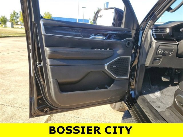 Quick Order Package 22E (DISC), 10 Speakers, 3.21 Rear Axle Ratio, 3rd row seats: bench, 4-Wheel Disc Brakes, ABS brakes, Adjustable pedals, Air Conditioning, Alloy wheels, AM/FM radio: SiriusXM with 360L, Anti-whiplash front head restraints, Audio memory, Auto-dimming door mirrors, Auto-dimming Rear-View mirror, Auto-leveling suspension, Automatic temperature control, Brake assist, Bumpers: body-color, Compass, Delay-off headlights, Driver door bin, Driver vanity mirror, Driver's Seat Mounted Armrest, Dual front impact airbags, Dual front side impact airbags, Electronic Stability Control, Emergency communication system: Automatic SOS Call, Exterior Parking Camera Rear, Four wheel independent suspension, Front anti-roll bar, Front Bucket Seats, Front Center Armrest w/Storage, Front dual zone A/C, Front fog lights, Front Passenger Interactive Display, Front reading lights, Fully automatic headlights, Garage door transmitter, Heated door mirrors, Heated front seats, Heated steering wheel, Illuminated entry, Knee airbag, Leather Trimmed Bucket Seats, Low tire pressure warning, Memory seat, Navigation System, Normal Duty Suspension, Occupant sensing airbag, Outside temperature display, Overhead airbag, Overhead console, Panic alarm, Passenger door bin, Passenger seat mounted armrest, Passenger vanity mirror, Pedal memory, Power adjustable front head restraints, Power door mirrors, Power driver seat, Power Liftgate, Power passenger seat, Power steering, Power windows, Radio data system, Radio: Uconnect 5 Nav w/10.1 Display, Rear air conditioning, Rear anti-roll bar, Rear dual zone A/C, Rear reading lights, Rear seat center armrest, Rear window defroster, Rear window wiper, Reclining 3rd row seat, Remote keyless entry, Security system, Speed control, Speed-sensing steering, Speed-Sensitive Wipers, Split folding rear seat, Steering wheel memory, Steering wheel mounted audio controls, Tachometer, Telescoping steering wheel, Tilt steering wheel, Traction control, Trip computer, Turn signal indicator mirrors, Variably intermittent wipers, Ventilated front seats, Voltmeter, and Wheels: 18 x 8.0 Aluminum Base Finish.